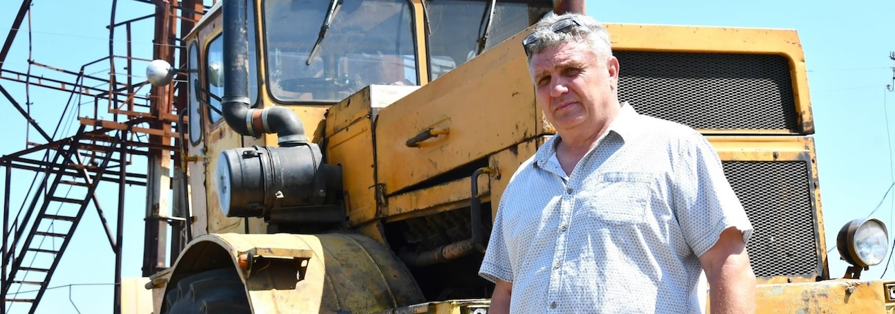 His name is Serhii Kishkovskyi, he is a local farmer and chairman of the Savannah agricultural community. Behind his back lie vast agricultural fields in the village of Snihurivka, which survived the occupation two years ago.