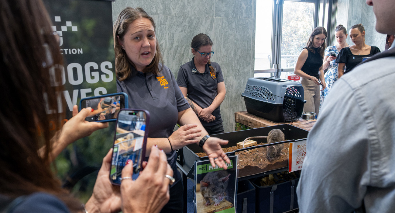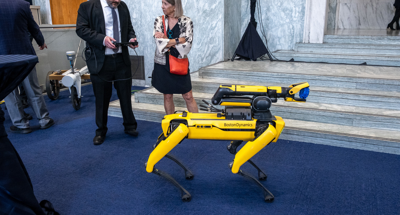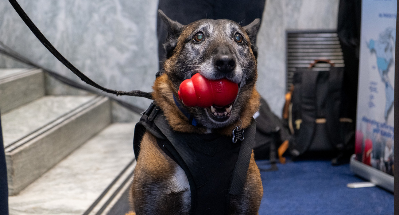 The event also featured a live demonstration of a demining rat, trained by APOPO and now living out retirement at the Maryland Zoo, as well as a retired K9 demining dog trained by the Marshall Legacy Institute. Also exhibiting were NGO partners including The HALO Trust, the Mines Advisory Group (MAG), PeaceTrees Vietnam, the Golden West Humanitarian Foundation, Legacies of War, Humanity & Inclusion, and JMU’s Center for International Stability and Recovery (CISR). The U.S. Army’s SLIC-Demining program (formerly Humanitarian Demining Research & Development), which develops new and specialized equipment for military and humanitarian demining, also displayed some of their cutting-edge equipment.