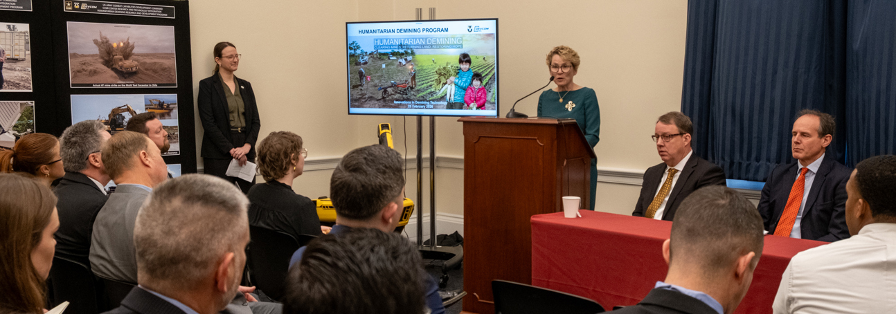 On Wednesday, February 25, the bipartisan Congressional UXO/Demining Caucus hosted a staff briefing on innovations in demining technology. The briefing focused on the U.S. Army's Strategic Low Intensity Conflict Demining Program (formerly known as the Humanitarian Demining Research and Development Program), and how it supports U.S. military needs and humanitarian demining goals.