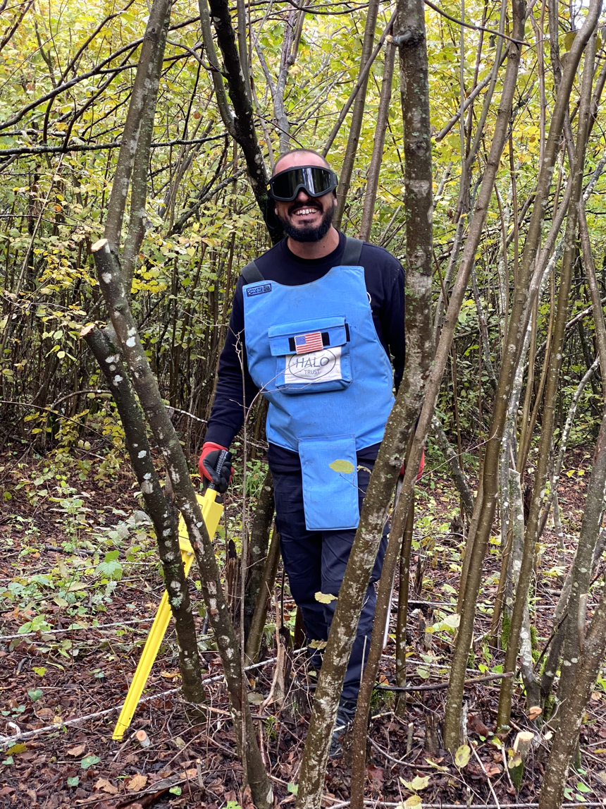 [left] Kaltrim Hoxha, Assistant Team Leader, says “I like working with the Schonstedt because it's easy to use and suitable for tasks with dense vegetation and steep terrains. It helps us do our job easier and safer.”