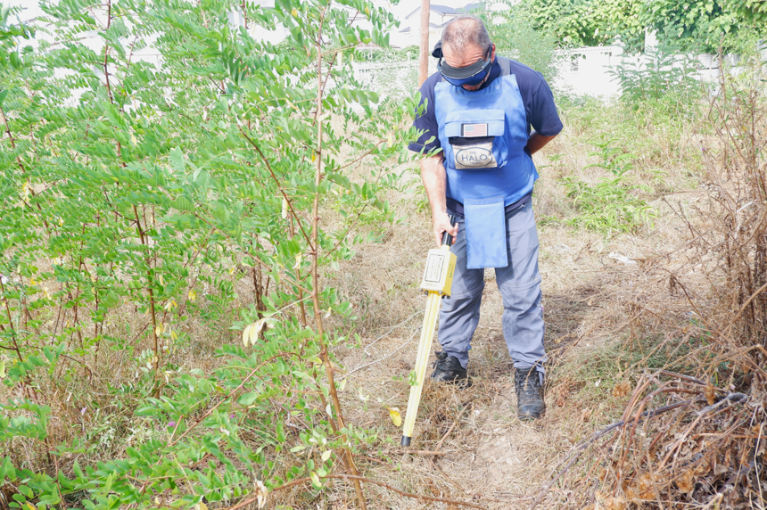 In June 2023, HALO discovered a chilling artifact – a BLU-97 cluster sub-munition – just 10cm (about the length of a credit card) from where Jakup was planting a tree in front of his house. They used a Schonstedt GA-72Cd Magnetic Locator to identify and clear this unexploded cluster bomb.