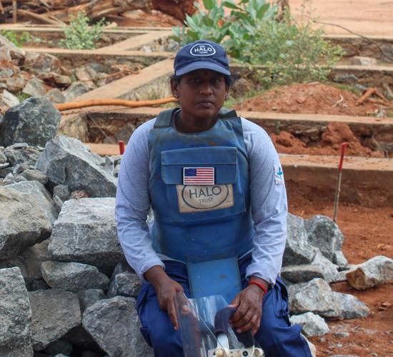 Since 2018, teams funded by the U.S. Department of State, Office of Weapons Removal and Abatement in the Bureau of Political-Military Affairs (PM/WRA) have made land safe across 99 minefields, destroying almost 6,000 landmines and benefitting over 40,000 people. Bashkaran Sivaginedavi is one of the deminers currently working to clear the landmines from Kirubayrani's land.