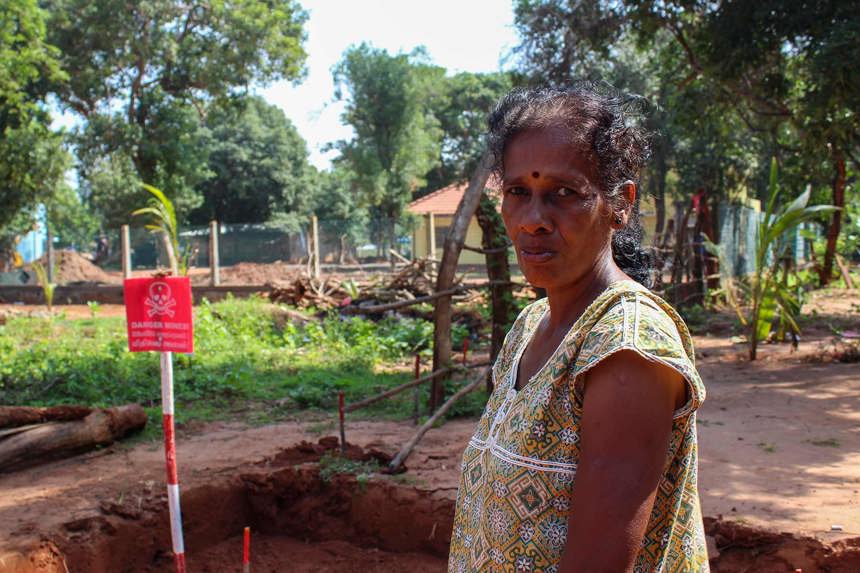 On the first day of planting Kirubayrani discovered a landmine. The very next day she unearthed four more. Then in January 2021, she was terrified to find another landmine on the footpath to her front door. Fearing for her family's safety, Kirubayrani called HALO. The survey team responded immediately, classifying her land as a minefield and prioritising it for clearance.