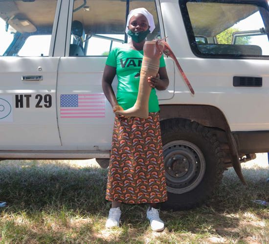 For Patience, the new prosthetic will remove the limitations she has experienced since the accident. She is looking forward to being at the heart of her family and community once again; she will be able to walk her children to school, fetch water to cultivate her garden and contribute to the future of her village.