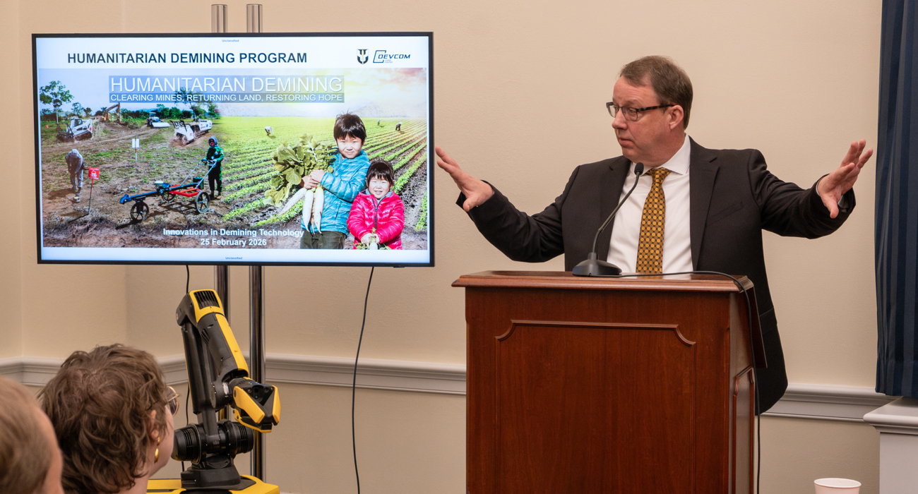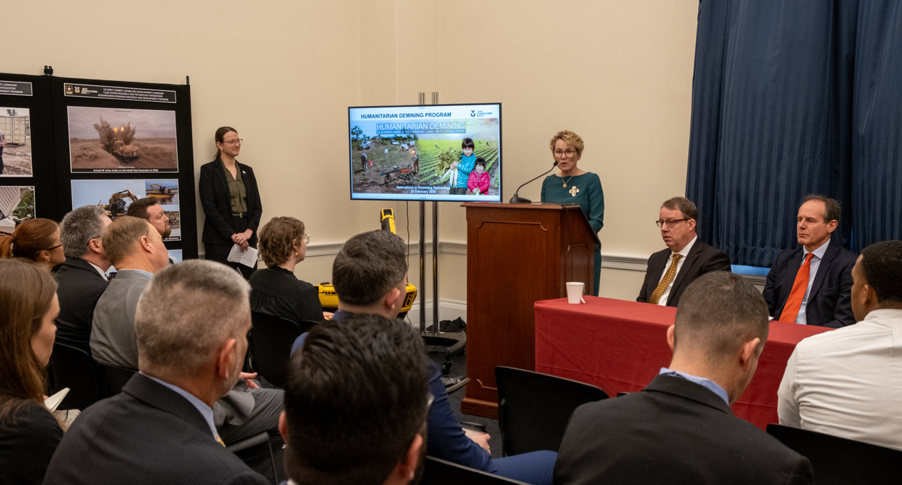 On Wednesday, February 25, the bipartisan Congressional UXO/Demining Caucus hosted a staff briefing on innovations in demining technology. The briefing focused on the U.S. Army's Strategic Low Intensity Conflict Demining Program (formerly known as the Humanitarian Demining Research and Development Program), and how it supports U.S. military needs and humanitarian demining goals.